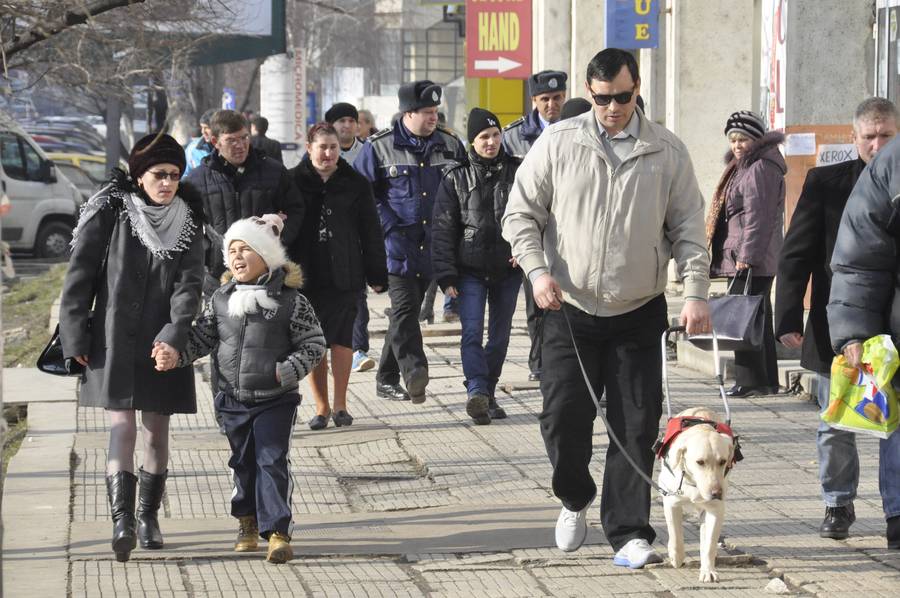 „Avem legislatie, Legea 446, art.63, care permite accesul câinilor pentru nevazatori in orice institutie sau loc public, precum si deplasarea cu mijloace de transport in comun. Noi am organizat un mic turneu prin Moldova pentru a populariza câinii ghizi deoarece cererea este din ce in ce mai mare.”