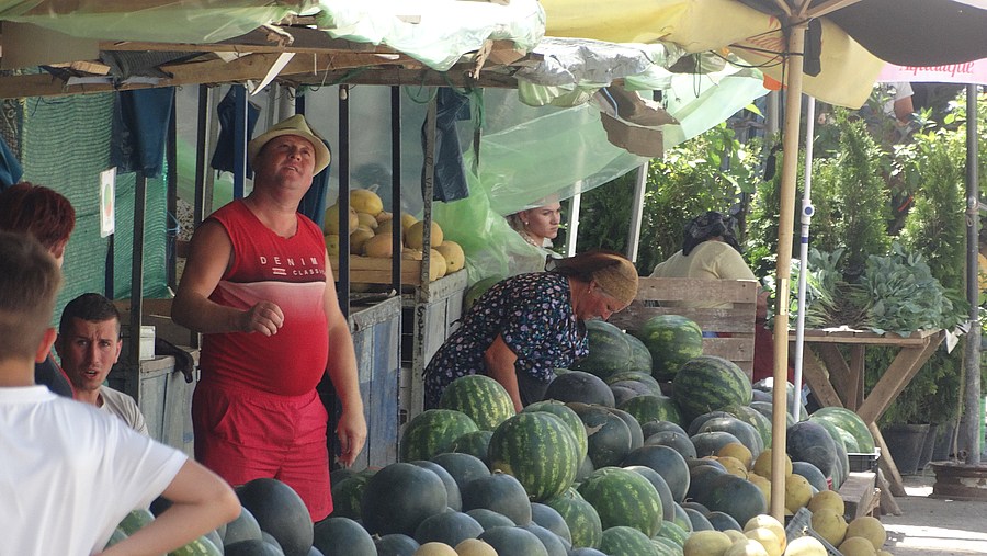 Camelia Mihalcea are la vânzare două tipuri de pepeni verzi și trei feluri de pepene galben. Prețurile, 2,5 lei la cel verde și 5 lei la cel galben. Ne garantează că marfa e de cea mai bună calitate și că o dă pe gustate. Nu-i este teamă că face țărcușă la pepene și rămâne nevândut, că toți sunt dulci. Aceiași poveste o întâlnim și la Ionela Coșu din Cudalbi, Galați. Dealtfel, cele două sunt prietene și petrec toată vara împreună la vândut pepeni în piața din Bacău. „Am clienți de ani de zile. Sunt aceiași pentru că știu că am marfă de calitate”, povestește Ionela Coșu. După o zi de vândut pepeni, cele două dorm în mașină, râzând că stau la hotel în zonă centrală.