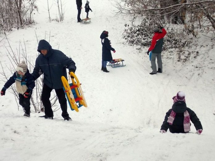 – povârnisurile din cartierul Cornisa si din apropierea cladirii albastre au fost transformate in derdelus n dupa prima zapada mai serioada, distractia s-a mutat pe sanii, faras sau saci de plastic