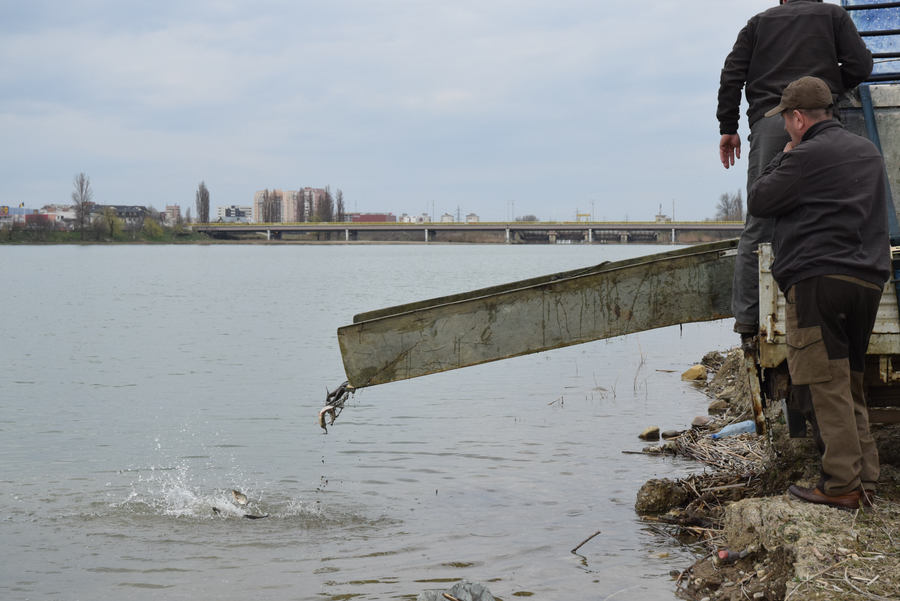 Interacțiunea cu mediul trebuie să ne preocupe pe toți. Lacul, format în jurul Insulei de Agrement, nu putea aștepta deversări , pescăruși … cormorani. 700 de kilograme de pește, aduse în condiții excelente, tocmai de la Botoșani, de la cea mai mare fermă piscicolă din Moldova, au fost deversate, cu blândețe, în albia decolmatată a Insulei. Pentru pescarii sportivi.