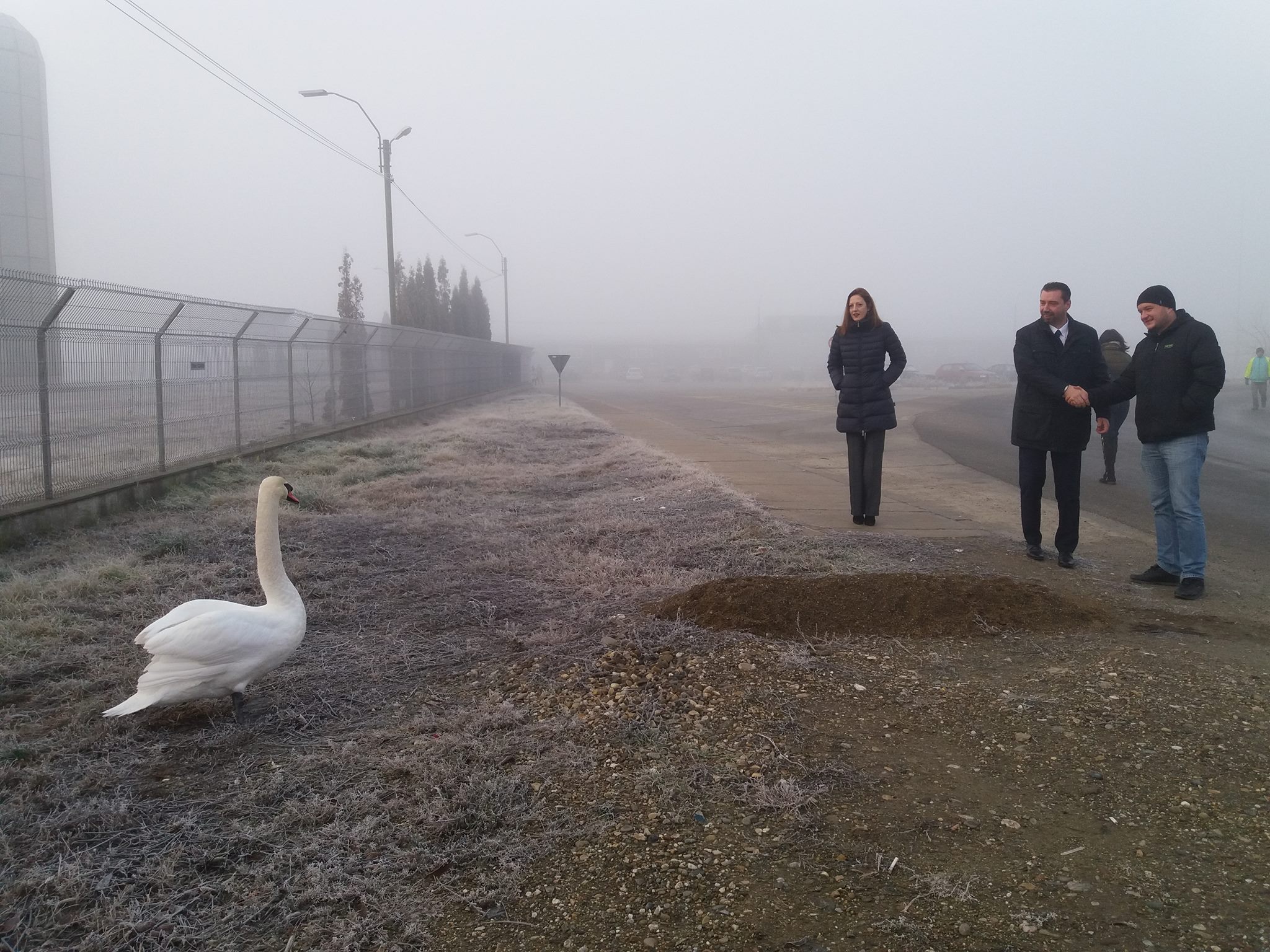 În această dimineață mai multe persoane au sesizat prezența unei lebede pe şoseaua din apropierea HIT Parc – com.Hemeiuşi. Lebăda era în stare bună şi a fost preluată şi eliberată pe lacul Bacău.
