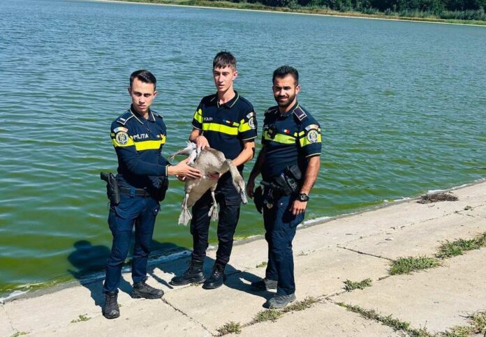 Polițiștii aflați în patrulare au observat pasărea aflată în dificultate și au acționat prompt pentru a o proteja. Aceștia au îndepărtat lebăda de pe carosabil, evitând astfel un posibil accident. Mai mult, oamenii legii au transportat pasărea în brațe până la lacul din localitatea Motoșeni, unde au eliberat-o în siguranță în mediul ei natural.