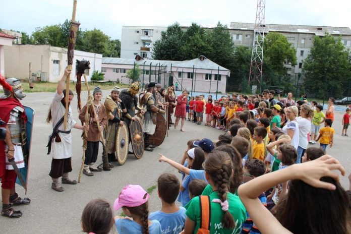Cea de a treia saptamâna a Scolii de vara a inceput intr-un mod inedit: luni, de la ora 11.00, in cadrul acestui program, am fost onorati sa-i avem ca oaspeti pe membrii Asociatiei Culturale „Geto-Dacii din Moldova”, un ONG infiintat la Iasi in 2014, fiind prima asociatie cu activitati de reconstituire istorica dedicata perioadei antice din regiunea Moldovei (presedinte Constantin Lapusneanu).