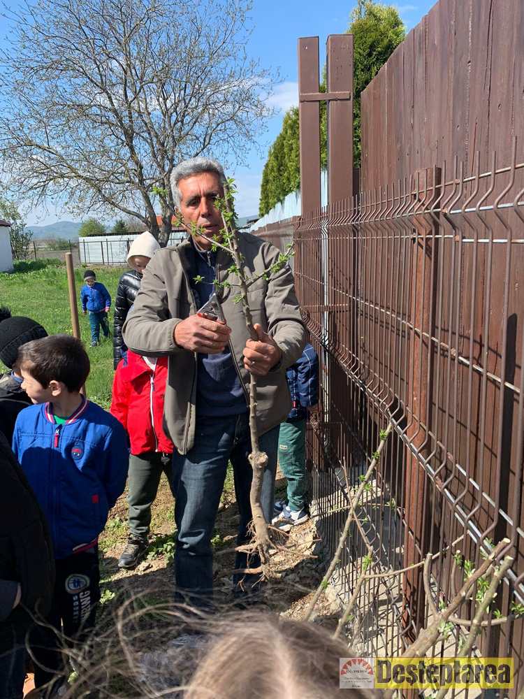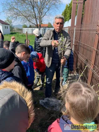 Astfel, pentru câteva ore, a fost invitat să le fie „profesor” cunoscutul specialist în pomicultură, dr. ing. Florin Acatrinei. Acesta le-a oferit micuților lecții despre cum se altoiesc pomii și despre cum se face corect o plantare.