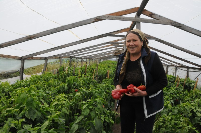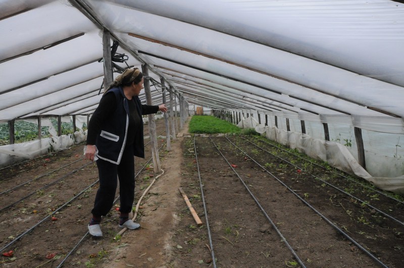 Mergem mai departe. Pe fiecare palma de pamânt este plantat ceva. Au fost rosii, ardei, ceapa, ardei iuti, gogosari. “Acum scoatem ultimii gogosari. Uitati ce mari s-au facut. Dar a fost blestemata seceta asta. A trebuit sa bagam pompele ca sa udam. Nici de la sistem nu a fost apa destula”, povesteste Mariana Motoc, care spune ca au fost norocosi. Altii n-au avut recolta nici pe atât. Si asta in conditiile in care in fiecare solar se vad trase furtune pentru udat si pamântul e muncit.