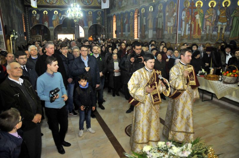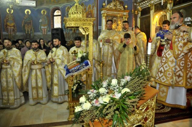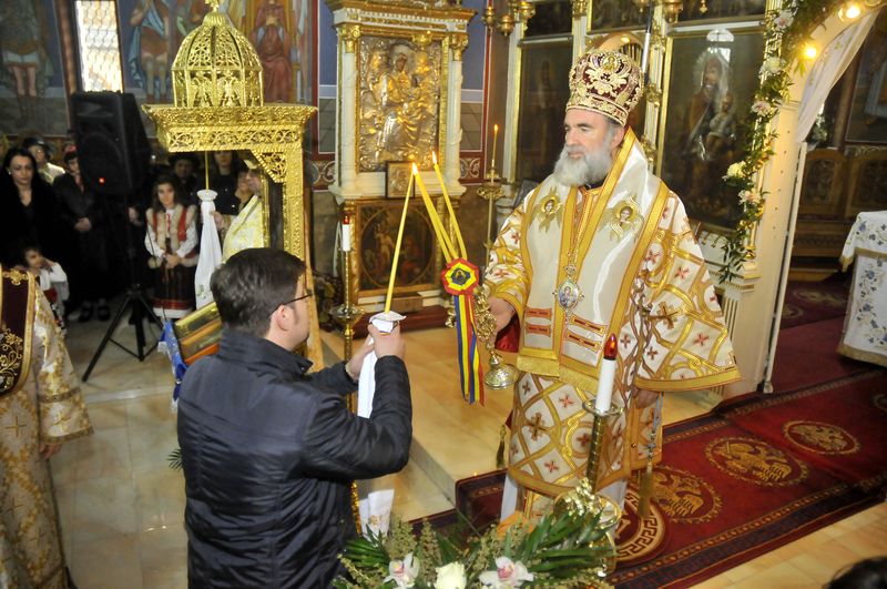 Duminică, 19 martie, acesta a săvârşit Sfânta Liturghie în sfântul lăcaş ctitorit în a doua jumătate a secolului al XIX-lea, fiind însoţit de un sobor de preoţi din Protopopiatul Bacău. Rugăciunile specifice celei de-a treia duminici din Postul Mare, Duminica Sfintei Cruci, au fost completate de cântările liturgice interpretate de un cor de tineri teologi, studenţi ai facultăţii de profil de la Iaşi, şi de un grup vocal-instrumental, numit Suflet Românesc, care a încântat audienţa cu pricesnele lor.