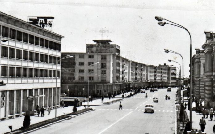 Fosta Strada Mare, actuala Mihai Viteazu, vazuta dinspre Cinema Central
