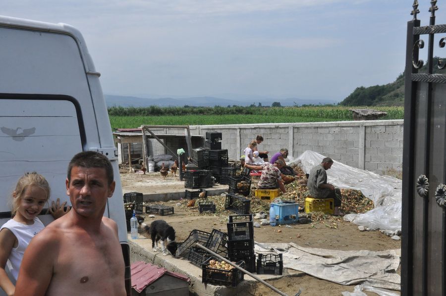 In curtea casei lui Costel Barbu e freamat mare. E vremea recoltarii cepei, iar o gramada enorma de ceapa alba este inconjurata de oameni care o sorteaza, o pun in saci si o pregatesc pentru piata de gros de la Bacau sau Piatra Neamt. Femei, barbati, ba si un bebelus in landou, in mjlocul tuturor, alaturi de o casa cu nivelul superios si tencuiala inca nefinalizate, in spatele careia se intind sere cât vezi cu ochii.