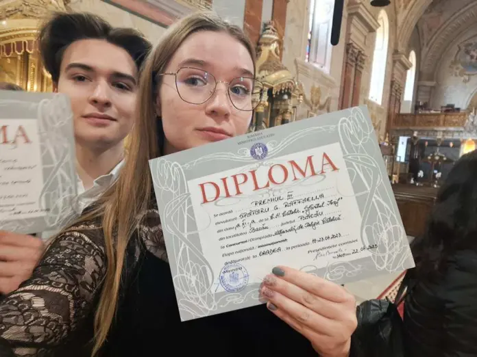 Luca – Pe mine ”m-a tras” Rafaela, mi-a spus ”De ce nu vii și tu la olimpiadă?”. Pe urmă, doamna de religie, doamna profesoară Angela Budău, m-a îndrumat, mi-a dat să studiez și acasă, unde am învățat cu sora mea. Bine, eu am mai fost la olimpiadă în gimnaziu, la matematică și la alte discipline, am luat și premii, deci eram ”antrenat”.