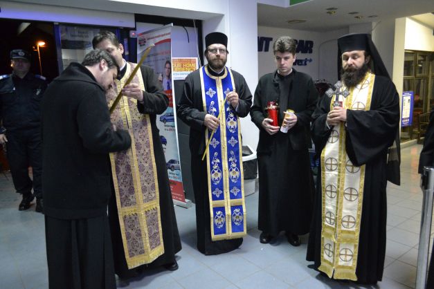 Acolo aștepta, emoționat, alături de sute și sute de enoriași, și preotul paroh al bisericii din Blăgești, Romeo Sbarcea, care, prin bunăvoința măicuțelor, a aprins o altă lampă și, într-un timp record, a ajuns, conducând autoturismul cu… o singură mână, la biserica pe care o păstorește. «La ora 11.55 am ajuns la parohia Blăgești. Am avut pază de la Bunul Dumnezeu și Lumina nu s-a stins pe drumul către Blăgești. M-am strecurat cum am putut prin aglomerația rutieră, pentru că sute de automobile transportau, la acea oră, credincioșii spre biserici și mânăstiri. După un minut de la trecerea de miezul nopții, credincioșii din Blăgești au luat Lumină din Lumina de la Sfântul Mormânt. A fost o premieră.Toți am fost foarte emoționați.
