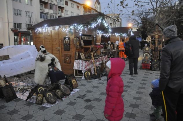 Piata Tricolorului gazduieste si Târgul de Craciun, unde in casutele de lemn se gasesc de toate pentru toti, de la porumb fiert, acadele, kurtos, cascaval afumat, haine de blana, pâna la palinca sau vodca. Cea mai mare coada a fost insa la cazanul cu vin fiert, de cinci lei paharul, preparat cu mere, portocale, scortisoara si zahar.