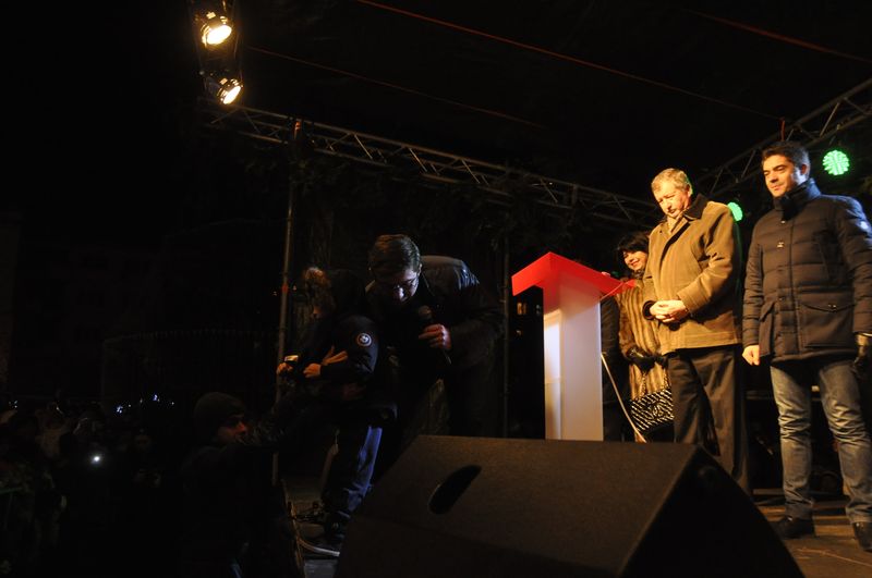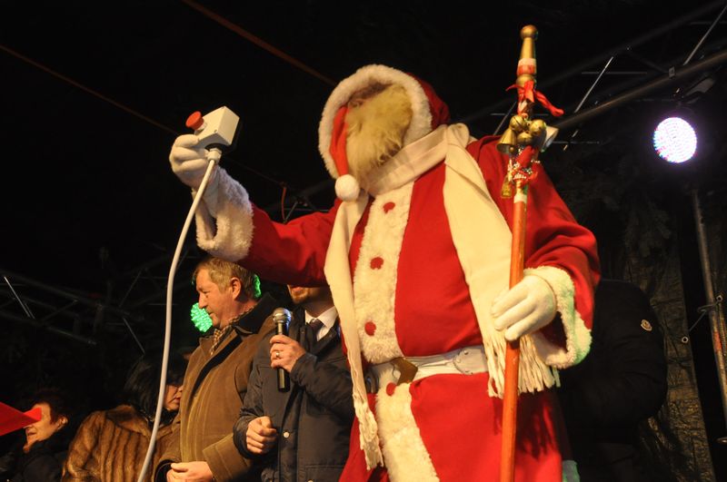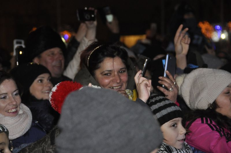 Un copilas a fost maestrul de ceremonii, pe care primarul Cosmin Necula l-a ridicat in brate si l-a ajutat sa apese pe butonul care a aprins luminile de sarbatori, in uralele publicului.