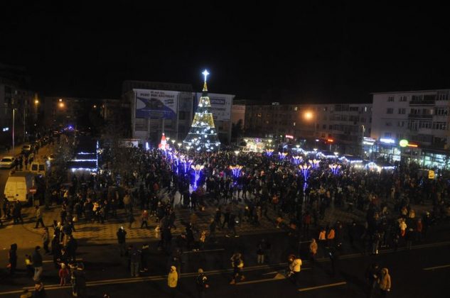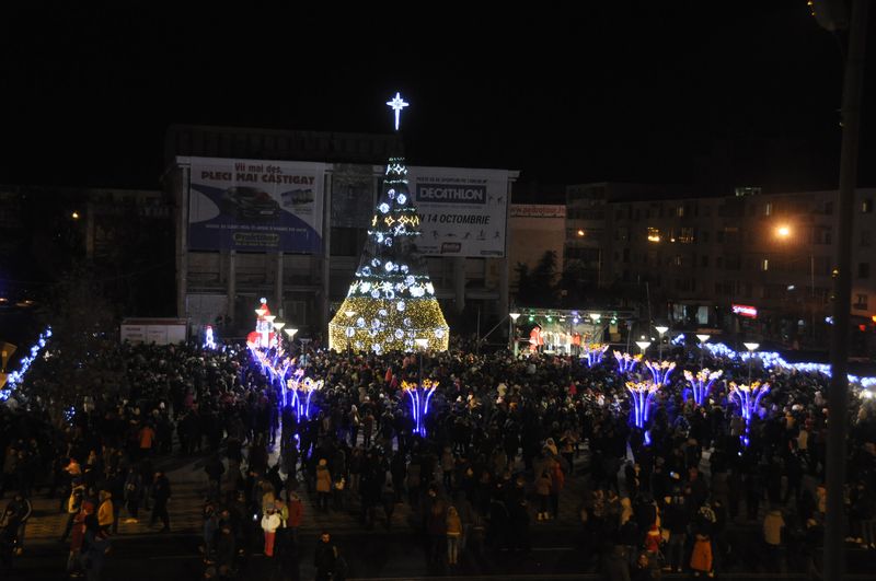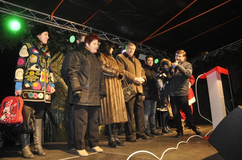 Primarul Cosmin Necula, insotit pe scena de cei doi viceprimari, l-a delegat pe Mos Craciun sa faca daruri tuturor copiilor, ceea ce ar fi bine sa se intâmple inclusiv prin bunavointa celor care au mai mult si pot darui si celorlalti, fiindca asa este spiritul sarbatorilor.