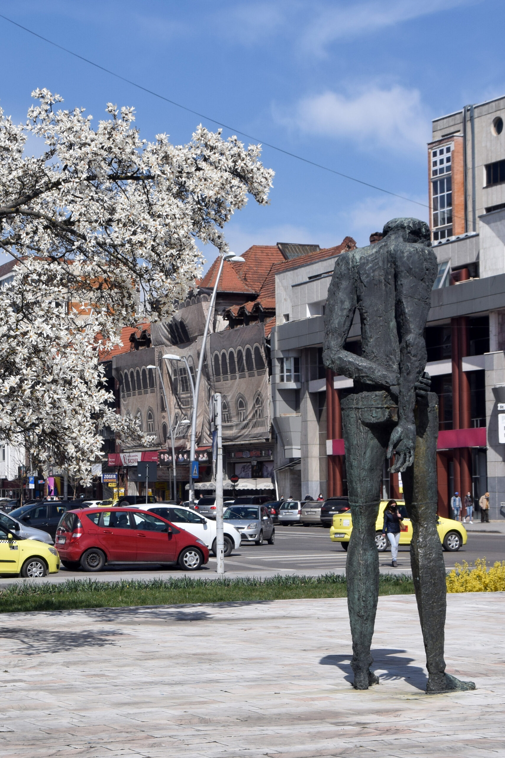 Statuia poetului aplecat în cugetare, rigidă prin duritatea metalului, luminată de soarele dimineții, împodobită de coroana cu flori a unui arbore care a bucurat simțurile atâtor generații, nu are nevoie de mască. Și ciorile fac parte din decor. Angajații de la Salubritate se luptă deja cu ele…