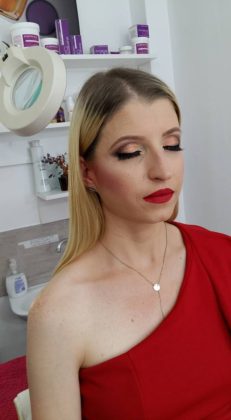 La Salonul Celine Hair Style, doritorii pot beneficia și de tratamente cosmetice, despre care ne-a vorbit Magda Crețu, specialistă în cosmetică și make-up. „Avem o gamă foarte largă de tratamente faciale, de întinerire, liftinguri cu efect instant, foarte multe tratamente pentru tenurile cu probleme. Aplicăm și gene, fir cu fir. În ceea ce privește make-up-ul și trend-ul pentru 2018, se poartă violet și albastru”, ne-a asigurat Magda Crețu, care ne-a mai povestit de genele umbre, acestea fiind negre cu o ușoară tentă de albastru.