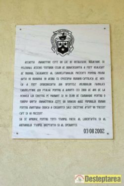 Pe veranda clădirii din fața bisericii, la adăpost de ploaia repezită de vară, luni la amiază, părintele Augustin îmi spunea, privindu-mă în ochi:„Mâine nu va ploua! Niciodată nu a plouat, de când știu eu, când s-a ținut slujba în această zi atât de importantă pentru noi. Biserica a fost binecuvântată în 2002 dar lucrările au început mult mai înainte, în 1996. Demersurile pentru cumpărarea terenului s-au desfășurat în perioada 1993-94. S-a dorit a fi ridicată aici o mănăstire catolică, care să corespundă cerințelor carmelitane. Noi avem o carismă, un mod de a trăi în biserică într-un fel diferit de alte ordine religioase. Avem nevoie de un loc unde se poate trăi rugăciunea, într-un ambient izolat de oraș, așa cum este aici, înconjurați de pădure și liniște. Dar în același timp, ce s-a construit aici seamană și cu stilul mănăstirilor ortodoxe. Am vrut să corespundem ideii acesteia religioase, din România. Mănăstirile ortodoxe, mai ales în Moldova, sunt izolate în locuri care te îmbie să te reculegi în natură și rugăciune. Am vrut să răspundem vocației noastre de carmelitani dar și la ideea conceptului de mănăstire, după gândirea credinciosului român.”