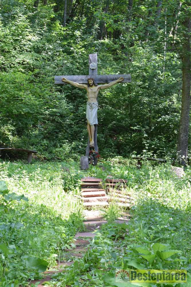 După momentele de reculegere din biserică, o cărare bătătorită te duce spre firicelul de apă zăgăzut de un prag de beton. Un podeț meșterit din scânduri de lemn, unele proaspăt geluite, te îndeamnă să pășești pe celălalt mal, destul de abrupt, unde o altă potecă șerpuiește prin pădure. De-a lungul timpului, pelerinii care au căutat liniștea la Mănăstirea Carmelitană, cutreierând dealurile din vecinătate au venit cu propunerea să facă un „drum al crucii”. În fiecare an, la finalul procesiunii care simboliza drumul făcut de Isus Hristos, crucea respectivă rămânea sprijinită de un copac. „În toate bisericile catolice, în postul mare dar nu numai, există această devoțiune a sfintei cruci”, precizează părintele Augustin. „Sunt aceste paisprezece opriri care pleacă de când Isus este condamnat la moarte și până este inmormântat. Avem acest drum prin pădure, până pe culme, care ne aduce aminte de patimile lui Hristos. Este puțin mai greu pentru persoanele în vârstă, dar calea desăvârșirii, calea sfințeniei nu este o cale prea ușoară. Prin această retrăire ne alăturăm lui Hristos, care prin patima lui, prin iubire, ne-a adus mântuire.”