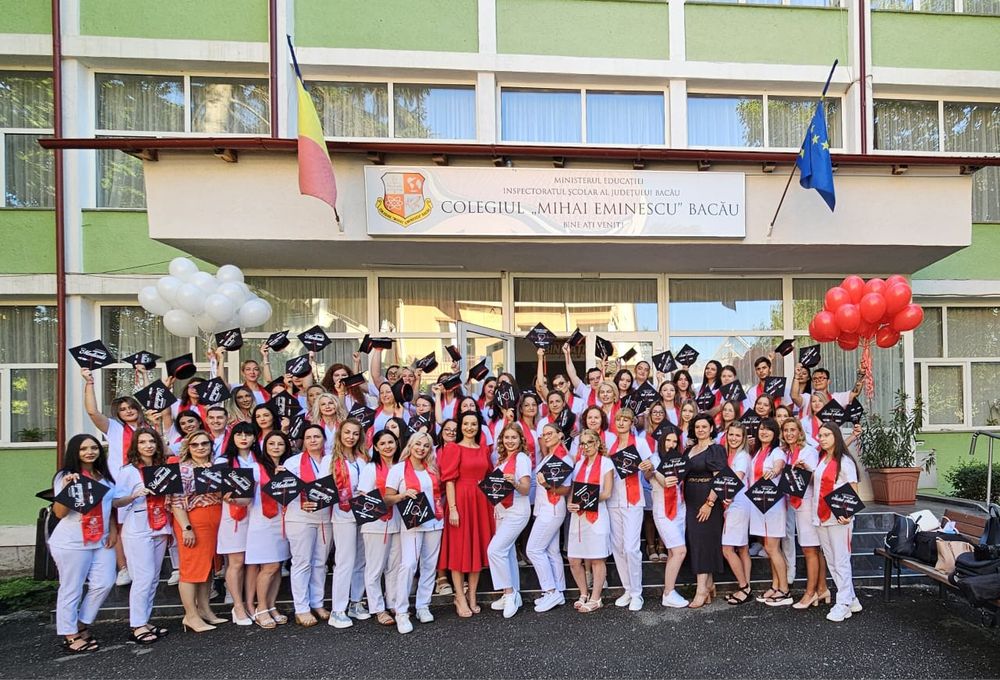 În plină caniculă, absolvenții Școlii Postliceale Sanitare din cadrul Colegiului „Mihai Eminescu” au defilat luni, 15 iulie, prin centrul orașului cu prilejul încheierii ciclului de trei ani de studiu. Parada a avut loc pe traseul Colegiul „Mihai Eminescu” Bacău – Parcul Trandafirilor, unde a fost amplasat și un cort unde s-au monitorizat funcțiile vitale ale trecătorilor – Prefectură, unde alaiul a fost așteptati de subprefectul Gabriel Lupu – ultima oprire fiind la sediul nou al Primăriei unde au fost întâmpinați de primarul Lucian Stanciu-Viziteu și viceprimarul Liviu Miroșeanu.