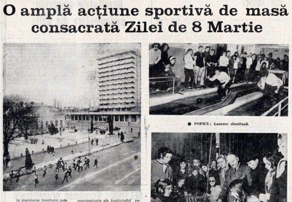 În primăvara anului 1973, presa locală consemna una dintre acele manifestări care caracterizau viața publică din România socialistă: competițiile sportive de masă organizate cu ocazia marilor sărbători din calendarul oficial. Un articol apărut în ziarul „Steagul roșu” din 6 martie 1973 descria în detaliu o amplă acțiune sportivă dedicată Zilei Internaționale a Femeii, intitulată sugestiv „Cupa 8 Martie”.