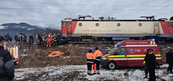 Mașină lovită de tren la Dofteana. Sunt două victime