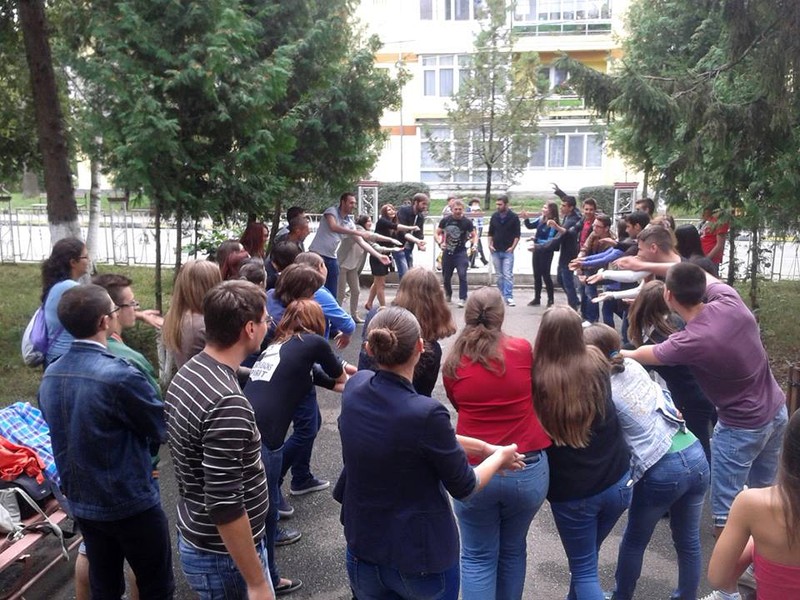 Studentii oaspeti au fost invitati la sediul liceului, unde a avut loc un interesant si util schimb de opinii cu liceenii, pe tema voluntariatului. Întâlnirea s-a încheiat cu un spectacol ad-hoc oferit de studenti, cu participarea liceenilor, în fata liceului, provocând nu doar curiozitatea, ci si aplauzele trecatorilor. „A fost, ne-a spus prof. Liliana Radovici, director adjunct, o întâlnire de suflet. Mesajul etic si mesajul artistic, fericit armonizate, au impresionat”.