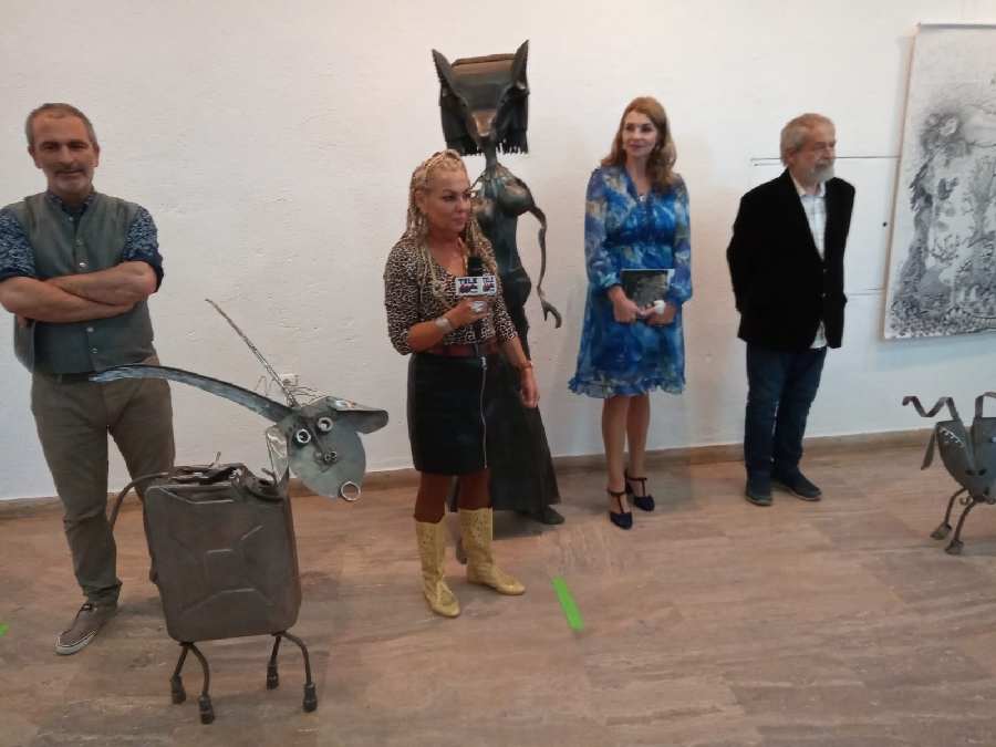E greu de crezut, însă creaţiile expuse, o armată de animale, păsări, unelete din alt timp, figuri fabuloase din fier, tablă, coase, greble, foarfeci, tigăi, vase, bucăţi şi întreguri, tot ce prezentul refuză să le mai notifice ca utile, intră, prin adăugare, prin alipire cu albastra flacără a sudurii, într-o nouă compoziţie care intrigă şi uimeşte.
