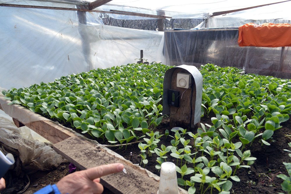 „Este primul an când facem asta, încercăm să altoim un pepene timpuriu de tip hibrid Sorento pe tulpină de bostan pentru că e mult mai puternică şi rezistă mai bine la temperaturile mai joase din pământ. Plus că nu putrezeşte rădăcina, dacă umiditatea este prea mare. Or, la noi, tocmai asta era problema: când ploua mai mult, zona unde cultivăm harbuzii se inunda şi ne compromitea producţia.”