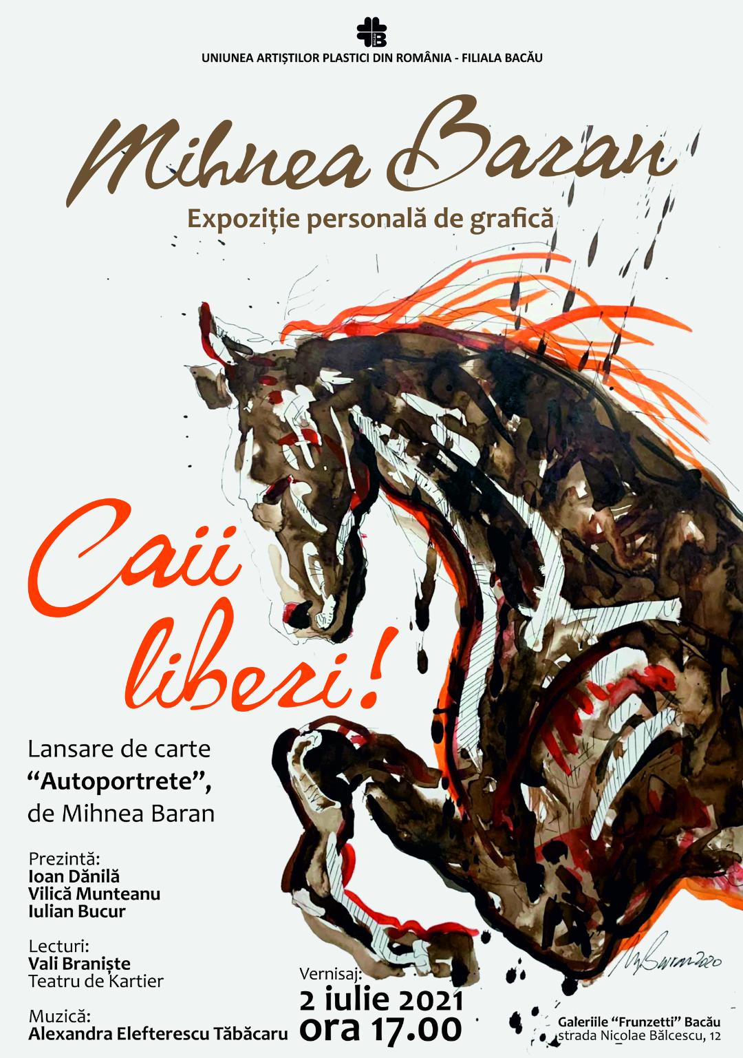 Vor fi vernisate două expoziții personale ale artistului Mihnea Baran, la Galeria Nouă, parter, expoziția de fotografie, intitulată Nihil sine Deo, iar la etaj expoziția de grafică, intitulată Caii liberi.