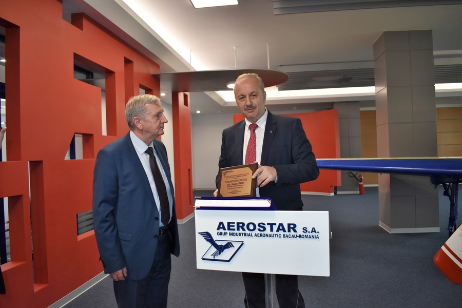 La final, Vasile Dîncu a scris în cartea onoare a sălii de la etajul al patrulea al clădirii AE Electronics unde se află expus un exemplar al avionului de antrenament IAK 52 din seria celor fabricate la Aerostar în anii 1978-2009. După care a primit de la președintele companiei băcăuane, Grigore Filip, o Plachetă de onoare „în semn de înaltă apreciere și deosebită considerație din partea conducerii Aerostar” și a răspuns cu un gest similar, oferind o plachetă cu însemnele ministerului pe care îl conduce.