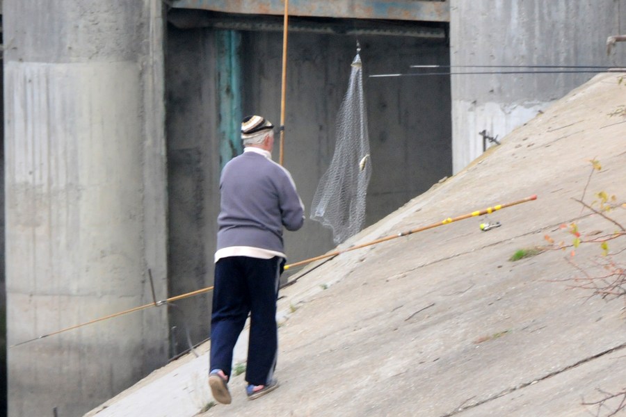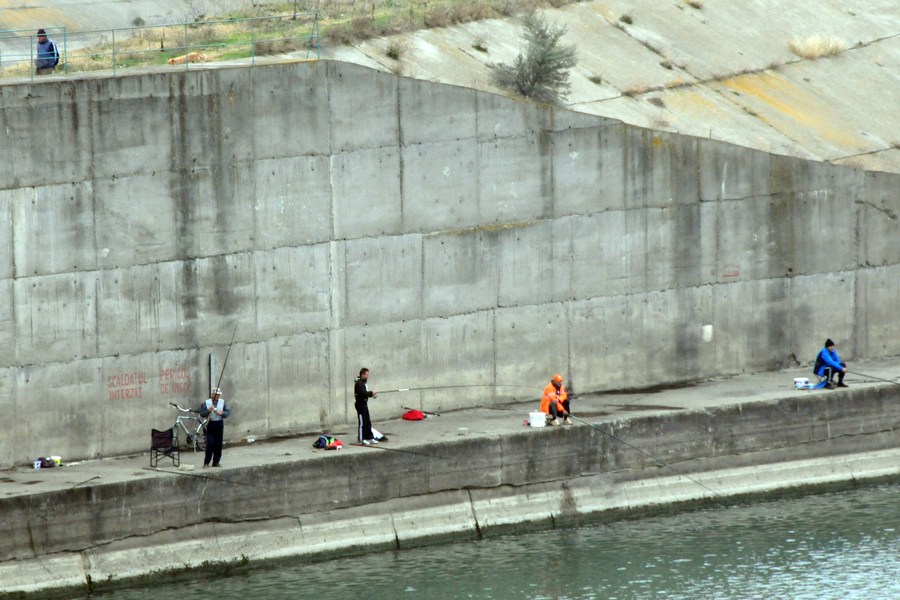 Ajungem la baraj. Vântul bate puternic dinspre nord. Valurile mari se sparg cu zgomot de placi. Nici urma de pescari pe malul lacului de la Sascut. In dreapta insa, multe masini ingramadite la intrarea pe dig. Pititi dupa peretele de beton, la dos de curentul de aer rece, amatorii de peste – mai mult sau mai putini sportivi – au activitate. Se pescuieste din barci, de pe praguri, de pe placile de protectie sau de pe mal. Cu lansete cu momeala, cu lansete cu cârlige la japca, cu lansete cu mirese. „Japca” consta in mulinarea unui cârlig tip ancora, ingreunat cu plumb, pe fundul albiei. Asa se agata pestele mare. Nu-i vorba de nimereala.