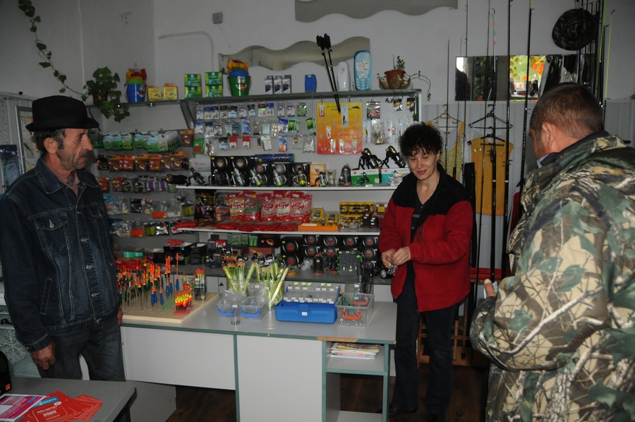 Stiam ca exista un magazin de pescuit in localitate, deschis in urma cu doi ani, chiar la soseaua principala. Nu-i trecusem pâna acum pragul. Am oprit masina pe un loc de refugiu chiar in apropierea lui. M-a intâmpinat o doamna amabila, intre doua vârste. Magazinul este aprovizionat cam cu de toate. Vânzarile sunt insa sub asteptari. Clientii, mai ales in sezonul rece, sunt din ce in ce mai putini. „N-are lumea bani”.
