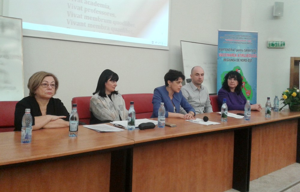Cu această ocazie s-a semnat un acord de parteneriat între autorităţile judeţene şi responsabilii din sănătate din judeţele Bacău şi Iaşi, pentru o şi mai mare implicare în vaccinarea antirujeolică.