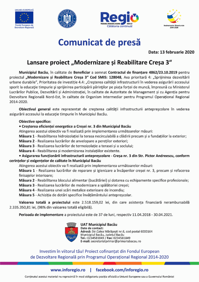 Comunicat de presăModernizare și reabilitare Creșa 3de Deșteptarea - 12 februarie 2020AcțiuneFacebookTwitterWhatsAppTelegramVK