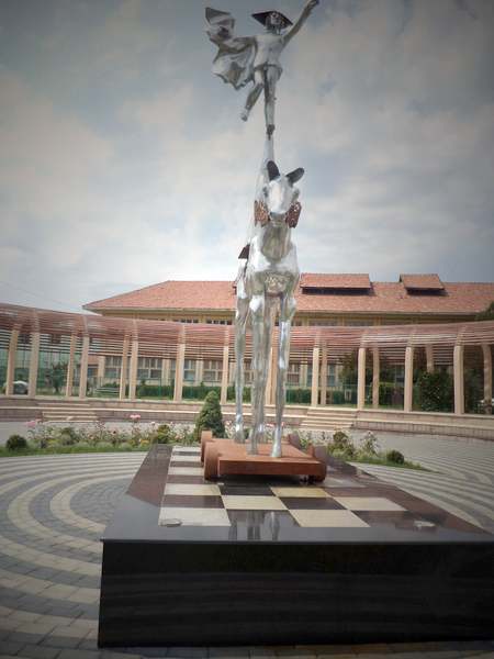 ‘Obviously, there is something magic about this monument: the artist wearing a cap adorned with disparate letters and bearing on his left shoulder a rich-folded cloak stretches his left arm to point to, most probably, an indefinite future,’ said the artist from Bacau Vasile Craita Mandra.