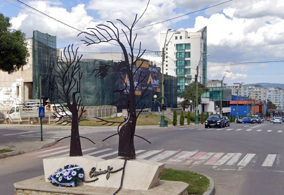 Pe Bulevardul Oituz, într-un scuar liniștit, aproape de Biblioteca Municipală „Radu Rosetti”, se află o operă care atrage privirile trecătorilor prin simplitatea și profunzimea sa. Este vorba despre chipul lui Mihai Eminescu, sculptat de Eremia Costel Grigorescu, un artist local care și-a pus amprenta asupra orașului prin mai multe lucrări monumentale.