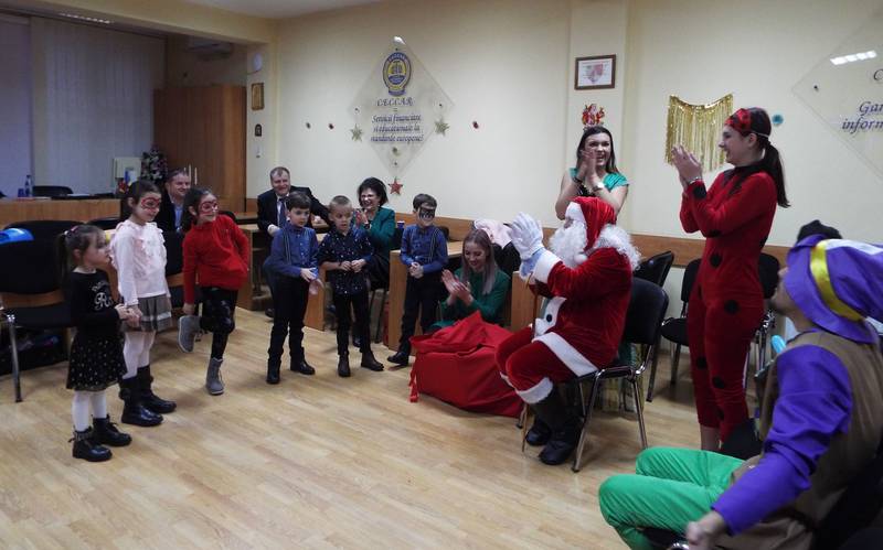 Moș Crăciun a fost întâmpinat de președintele în exercițiu al Filialei CECCAR Bacău, Radu Mihai Făghiean, de directorul executiv Constantin Păstrăv, de personalul filialei, dar și de câțiva părinți.