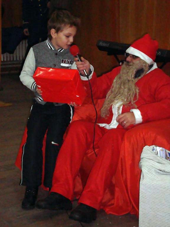 Pe rand, a scos din sacul sau darurile mult asteptate, iar fiecare copil chemat de el a urcat pe scena pentru a-si lua cadoul. Un copil i-a prezentat mosului carnetul de note si pentru ca ave pe linie „FB”, a primit un cadou pe masura rezultatelor obtinute. Cei mai nerabdatori, i-au deschis cadourile imediat ce au ajuns in sala si pentru ca doreau neaparat sa se joace cu jucariile primite, si-au luat parintii de mana si au parasit unitatea pentru a ajunge mai repede acasa, unde, puteau sa se joace in voie.