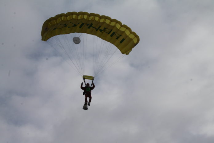 Miercuri la prânz, Moș Crăciun a fost parașutat dintr-o aeronavă militară pe aerodromul Bacău.