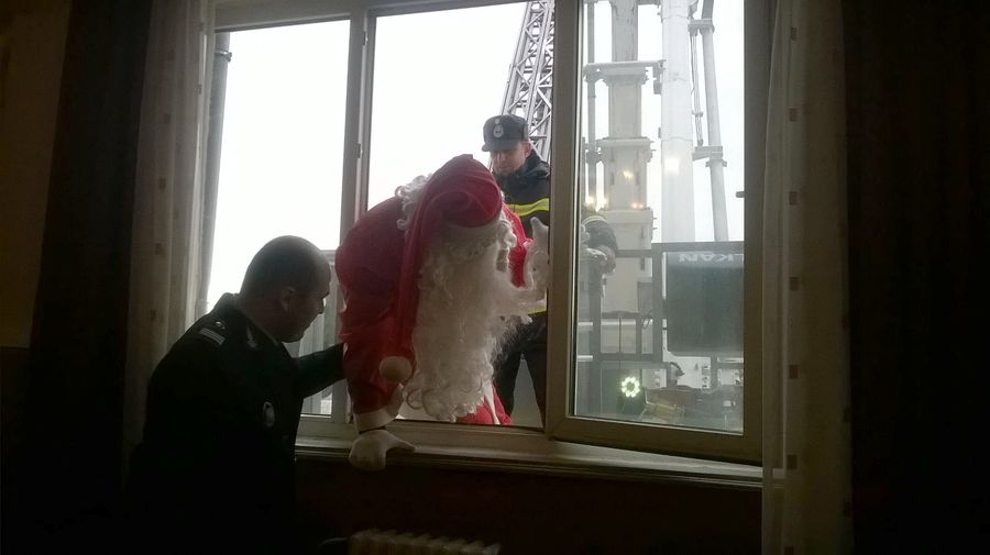 Şi anul acesta, Moş Crăciun şi-a făcut timp să ajungă la copiii salvatorilor de la Inspectoratul pentru Situaţii de Urgenţă (ISU) Bacău. Cu ajutorul pompierilor, care i-au pus la dispoziţie autoscara de intervenţie la înălţime, bătrânelul şi-a pregătit o intrare spectaculoasă, pe fereastra clubului de la etajul doi. Nu a uitat nici de sacul plin de daruri, frumos împachetate pentru fiecare prichindel care l-a aşteptat cuminte lângă brad.