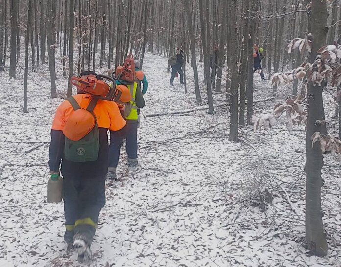 În pădurile din Berzunți, administrate de Ocolul Silvic Livezi din cadrul Direcției Silvice Bacău, muncitorii forestieri își desfășoară zilnic activitatea, indiferent de condițiile meteo. Sub cerul liber, în mijlocul naturii înzăpezite, acești „lucrători la birou” au înlocuit clasicul scaun cu un trunchi de copac și tastatura cu motoferăstrăul.