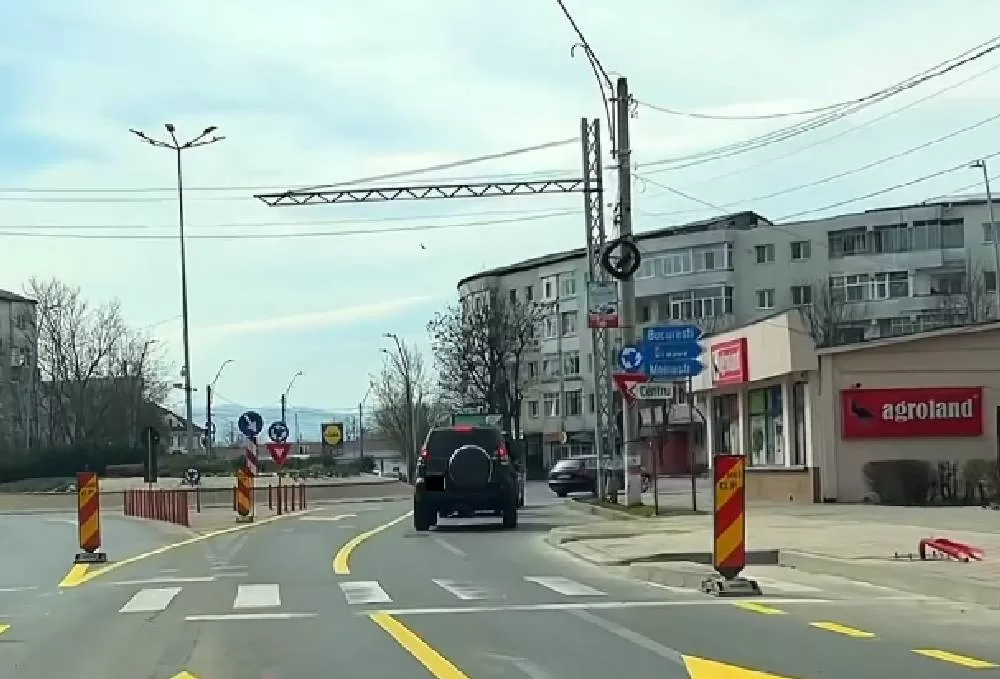 Pentru a se retrasa benzile pe sensul de mers spre sensul giratoriu, pe celălalt sens a mai răms doar o banda si jumătate.