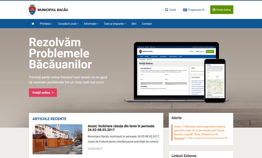 Noul site al Municipiului Bacău a fost lansat astăzi în varianta sa inițială. Acesta are un design compatibil și cu dispozitivele mobile, noi funcționalități și o nouă adresă – www.municipiulbacau.ro: