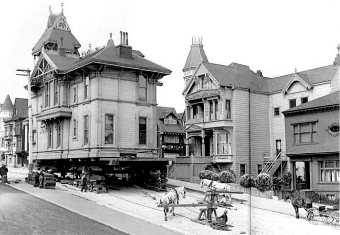 În anul 1908, o casă victoriană a fost mutată pe strada Steiner din San Francisco, California, exemplificând un efort remarcabil de inginerie și logistică a începutului de secol 20. Folosind cai și un sistem de scripeți, această mutare reflectă provocările și ingeniozitatea necesare pentru a reloca clădiri mari și ornamentate în acea perioadă.