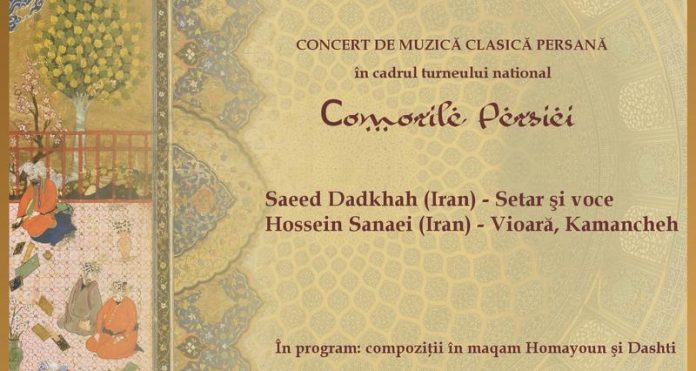 Filarmonica „Mihai Jora” din Bacău în premieră un concert de muzică clasică persană în data de 16 ianuarie 2017, ora 18.30 în Sala Ateneului. Concertul se va relua in data de 17 ianuarie, ora 17.30 la Biblioteca Municipală din Onesti. Evenimentele fac parte din Turneul Naţional „Comorile Persiei”, organizat de Asociaţia Culturală „Nirmal Art” şi care conţine concerte, workshop-uri şi conferinţe ce se vor desfăşura în importante instituţii de cultură din România.
