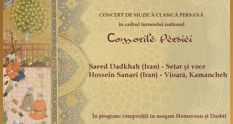 Publicul va beneficia de un program inedit susţinut de artiştii iranieni Saeed Dadkhah şi Hossein Sanaei. Melodiile seducătoare ale maqamurilor vor fi interpretate la instrumente specifice – setar, kamancheh – şi vor fi brodate pe versurile poeţilor sufiţi Hafez şi Rumi.