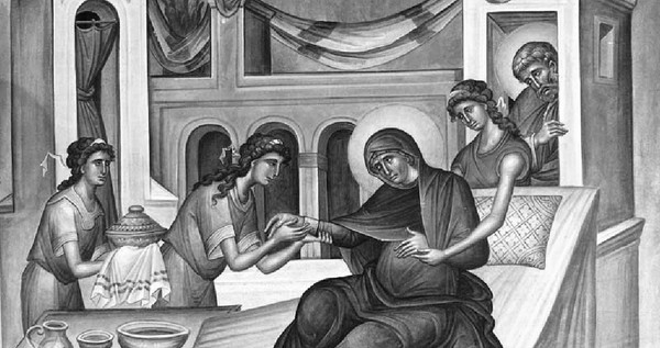 Aceeași bucurie a umplut și casa drepților părinți Ioachim și Ana. La vremea cuvenită s-a născut și prunca multașteptată cea care va fi Născătoarea de Dumnezeu. Încă de la ziua închinării ei la Templu, prin voia lui Dumnezeu a fost luată de Arhiereul Zaharia și dusă în Sfânta Sfintelor unde a stat pana la vârsta de 12 ani fiind hrănită cu mâncare îngerească . Astfel a fost pregatit ” vasul cel ales”(Luca 1,4-23) din care avea să se nască Domnul Hristos.