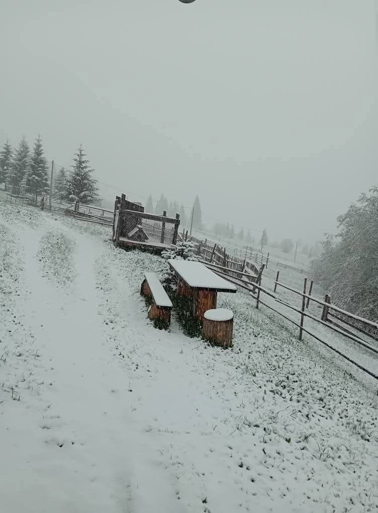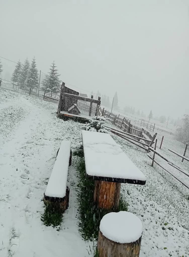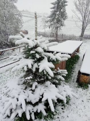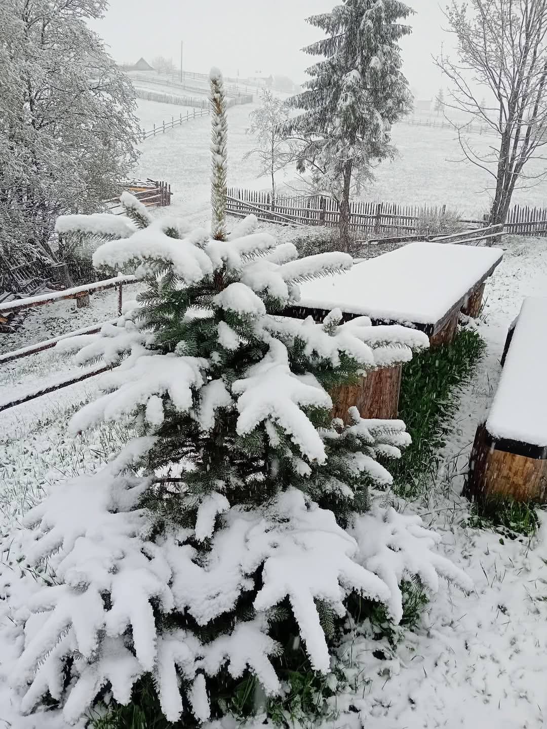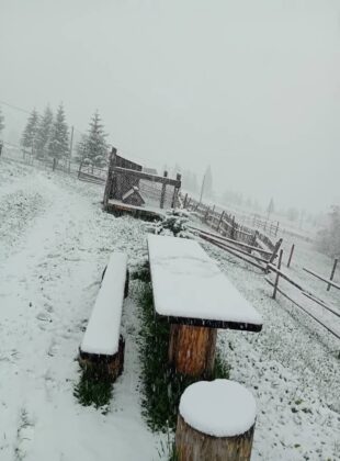 Ninsoare neașteptată în luna mai, în județul Suceava