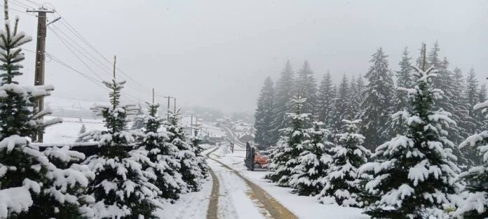 Un strat consistent de zăpadă s-a așternut peste brazi, drumuri și acoperișuri, creând o imagine de basm, dar stârnind îngrijorare în rândul localnicilor și al turiștilor surprinși de vremea capricioasă. (FOTO: Koro Coromel)