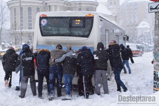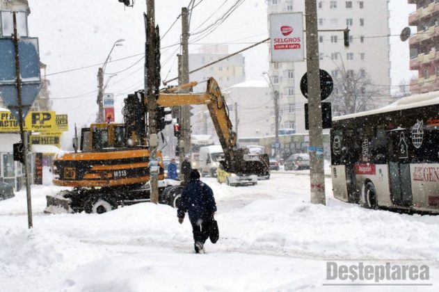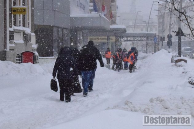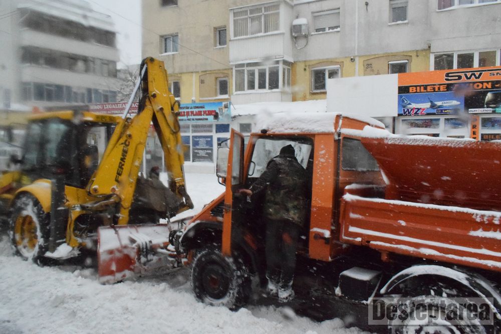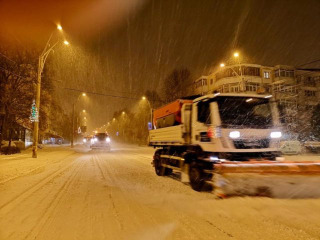 În Bacău Se lucrează continuu pentru ca principalele artere să fie practicabile la primele ore ale dimineții.