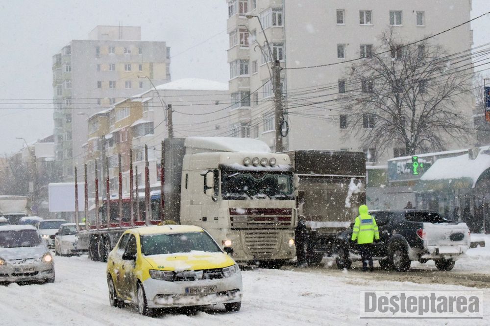 Din cauza ninsorilor abundente şi viscolului care produc vizibilitate redusă, CNAIR şi Poliţia Rutieră au decis restricţionarea circulaţiei pentru autovehiculele cu masa totală maximă autorizată mai mare de 7,5 tone, pe următorul sector de drum naţional: